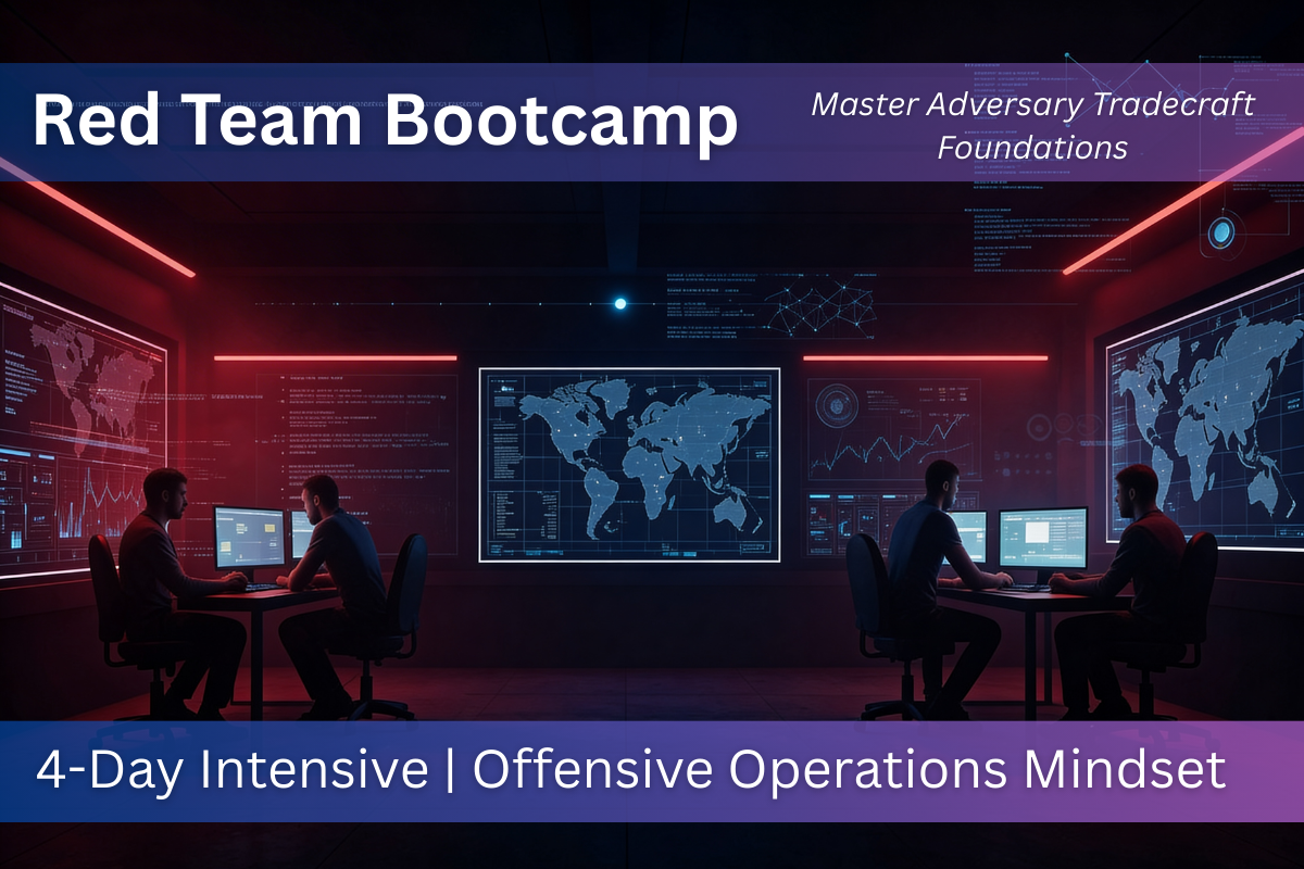 It is a red team foundations bootcamp focused on adversary tradecraft workflow and discipline. It complements penetration testing by emphasising objectives, operational control, and structured reporting.